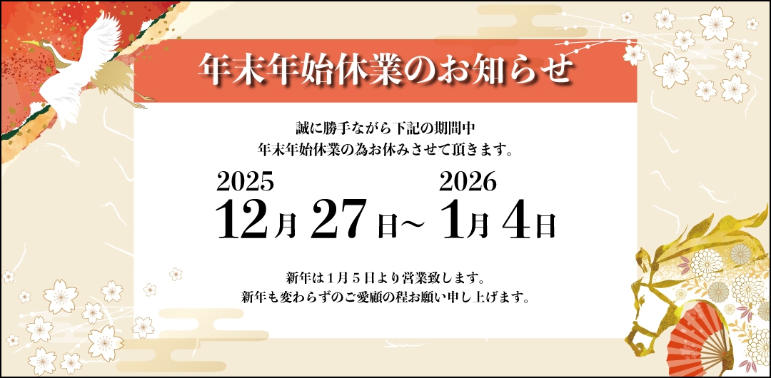 | 2025/12/27~2026/1/4まで休暇とさせて頂きます。 期間中のお問合せ・ご連絡につきましては問い合わせからお願いいたします。 ご返答・ご連絡につきましては休暇明けになりますことをご了承ください。 |